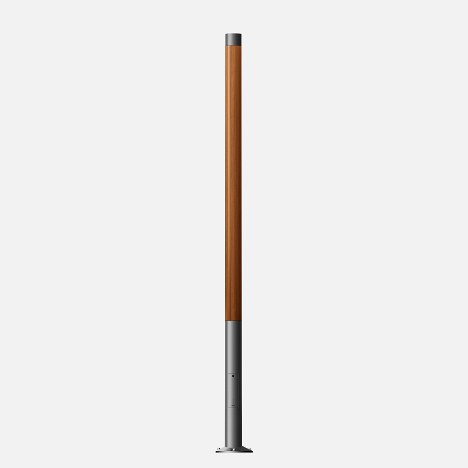 Wooden building elements soften the built environment by using natural materials of the highest quality and are luminous design features for public spaces. They are ideally suited for delineating and structuring spaces such as plazas, building entrances, and atria. An accompanying building element head must be selected for proper installation. Suitable for installation in wind zones with a maximum wind speed up to 115 MPH per EN 60598.