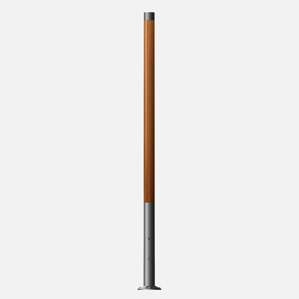 Wooden building elements soften the built environment by using natural materials of the highest quality and are luminous design features for public spaces. They are ideally suited for delineating and structuring spaces such as plazas, building entrances, and atria. An accompanying building element head must be selected for proper installation. Suitable for installation in wind zones with a maximum wind speed up to 115 MPH per EN 60598.