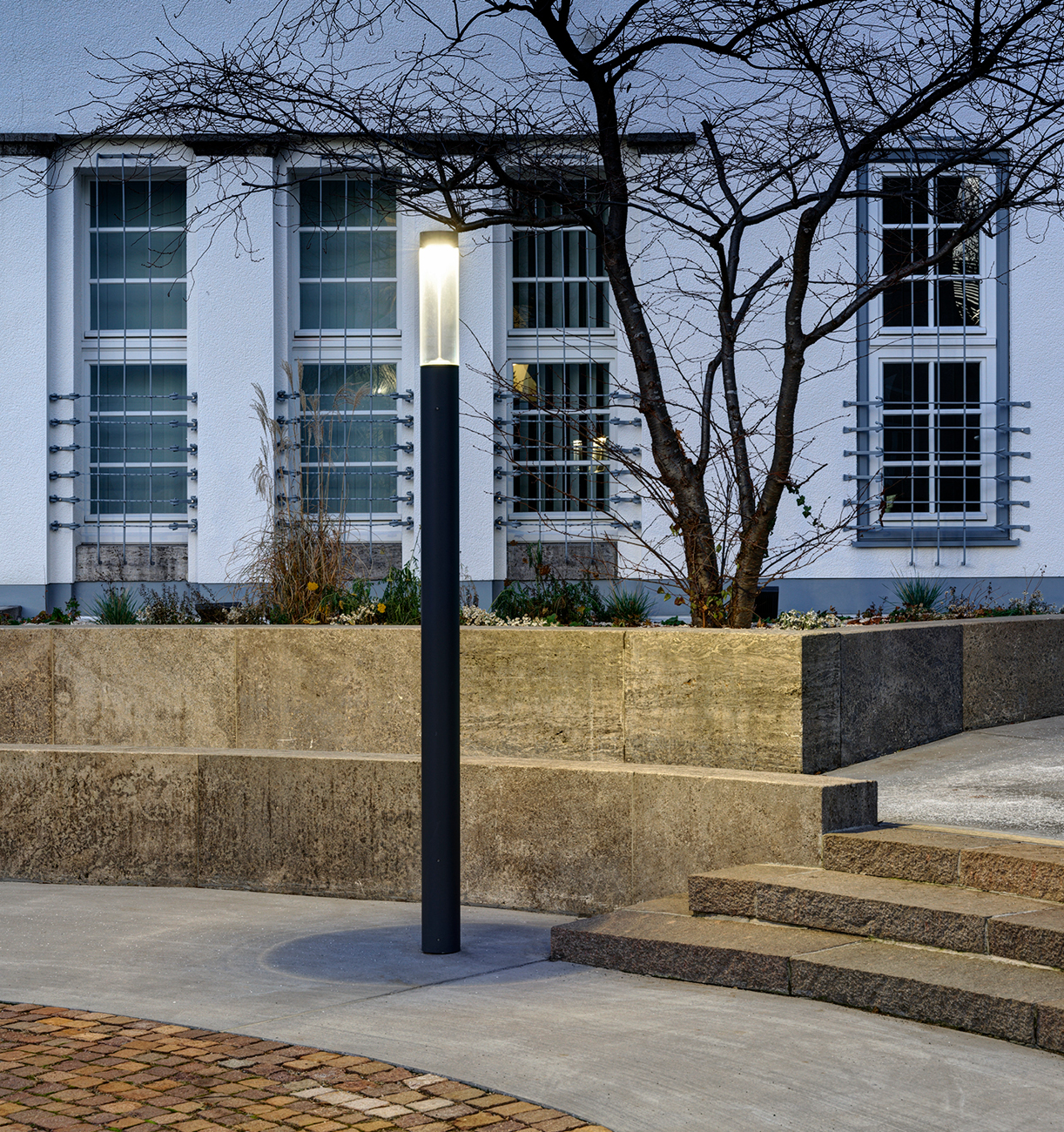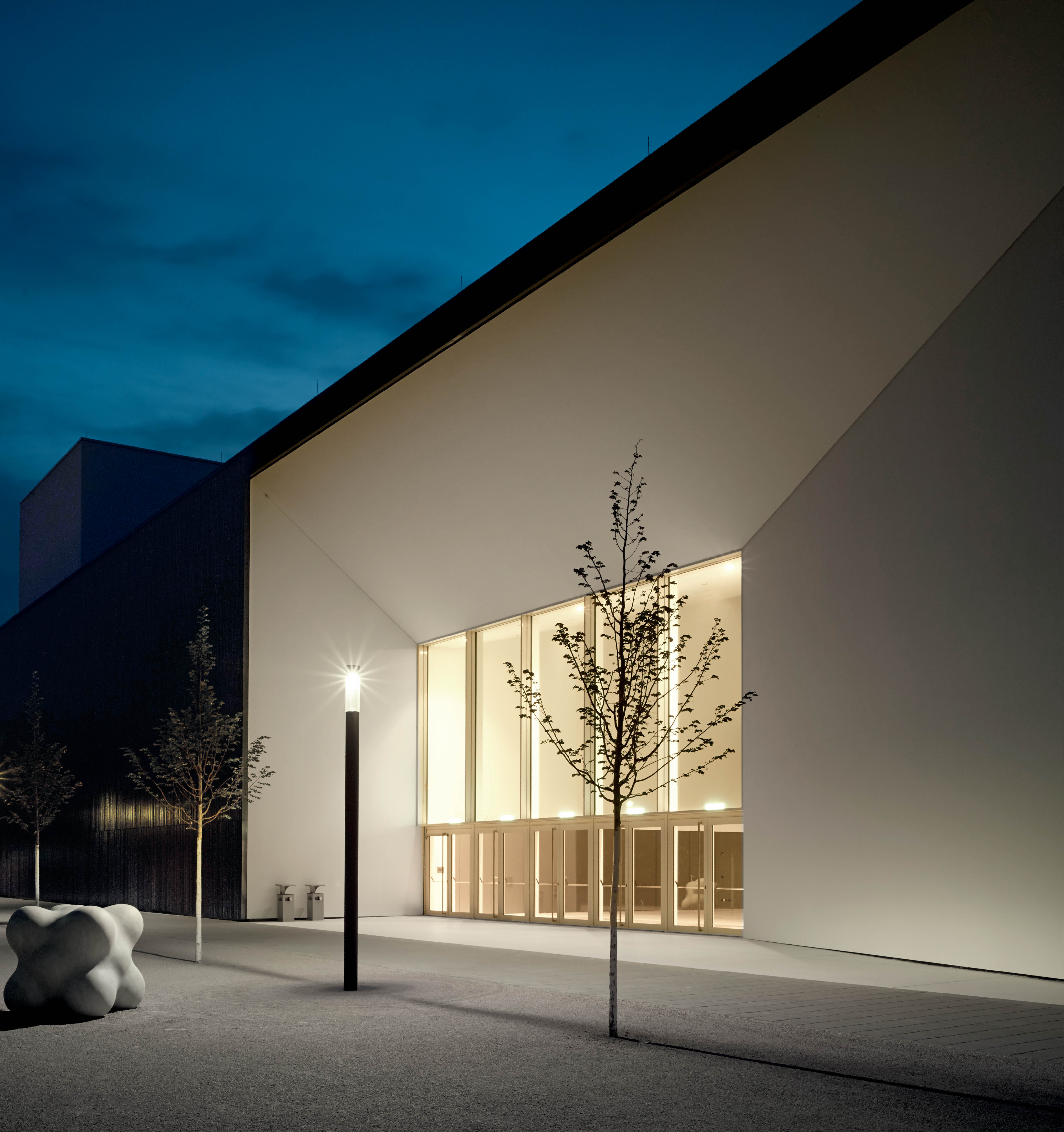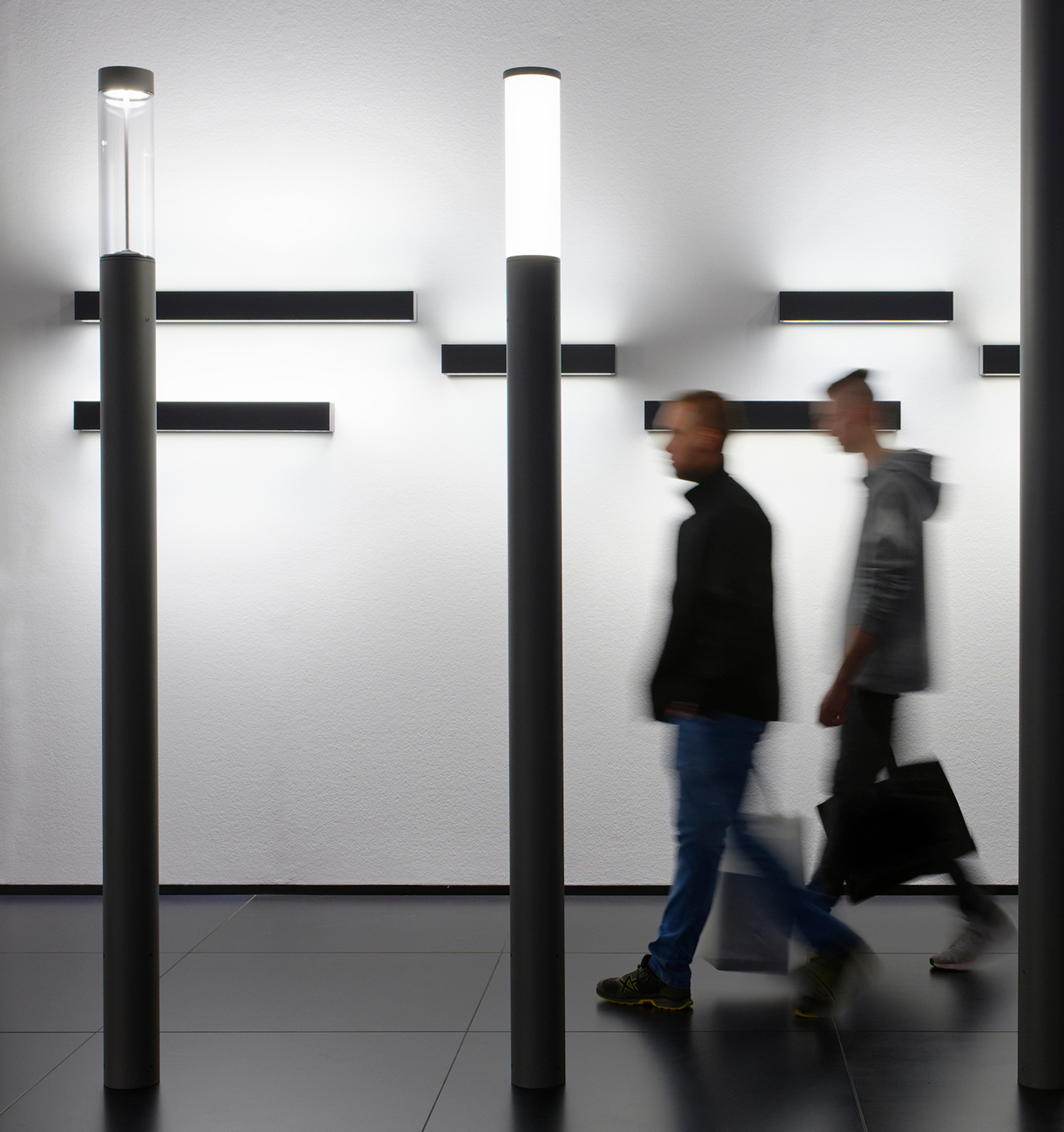 Light building elements are luminous design features for public areas. They are ideally suited for delineating and structuring interior and exterior spaces such as landscape areas, plazas, building entrances and atria.