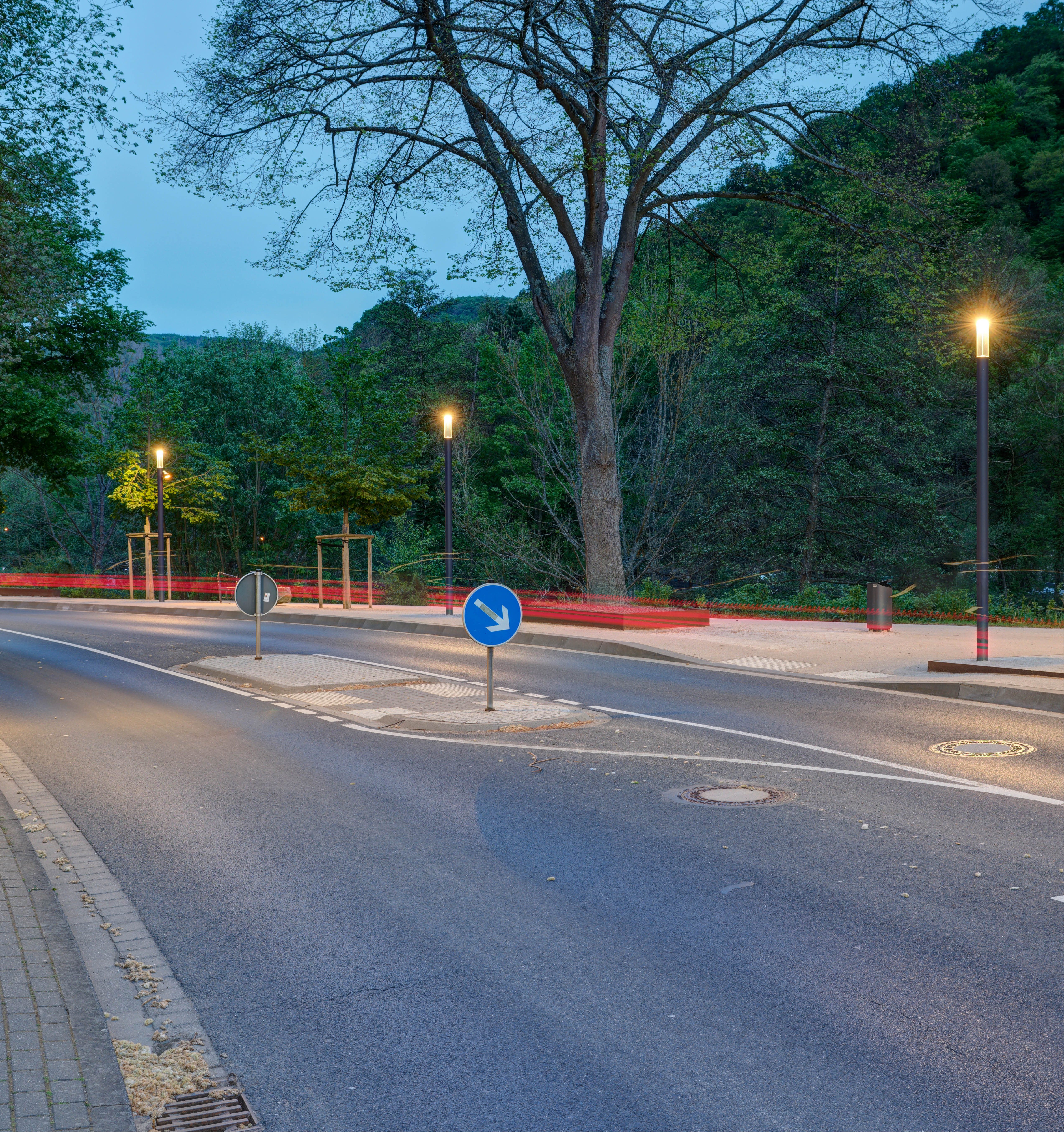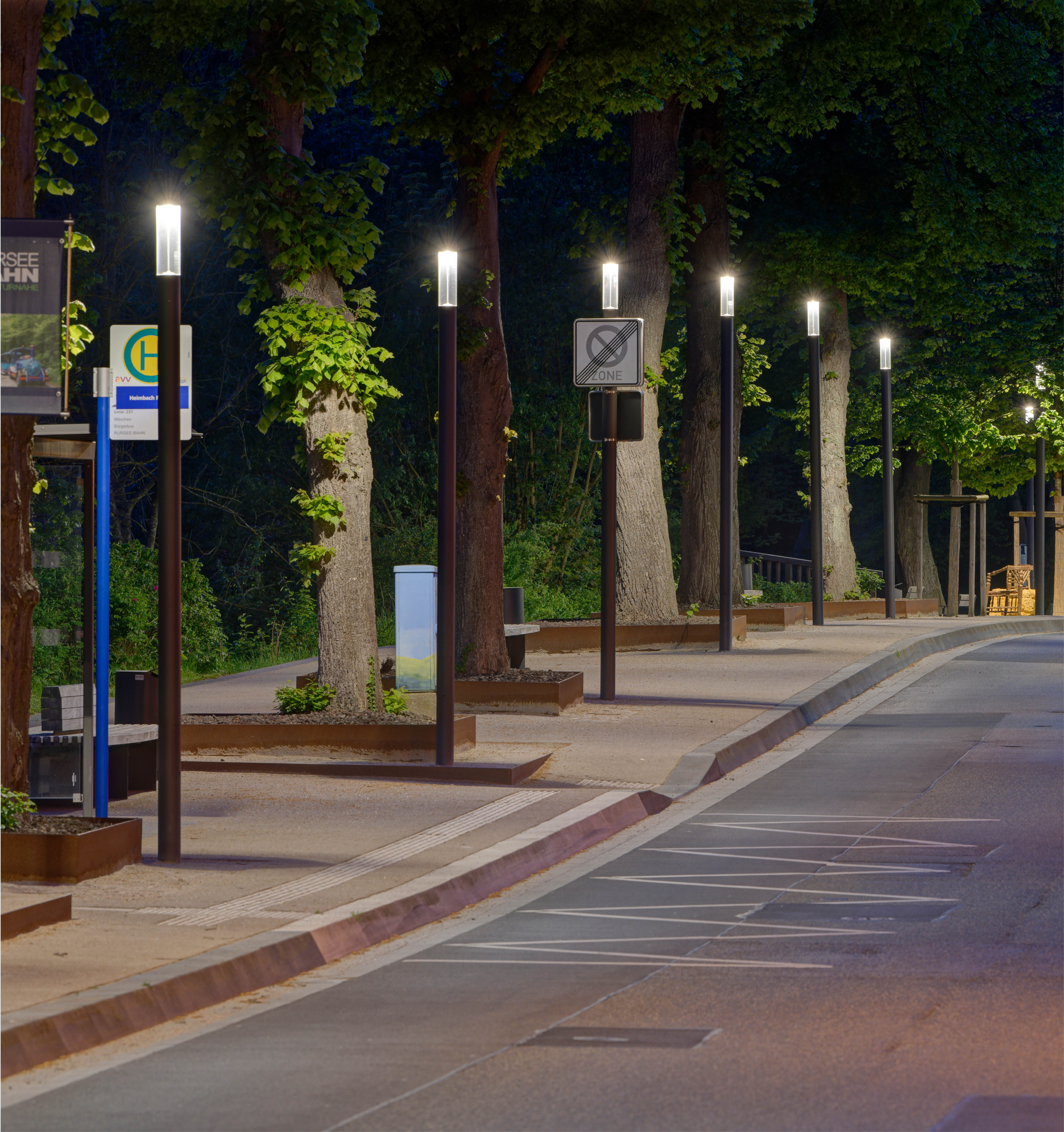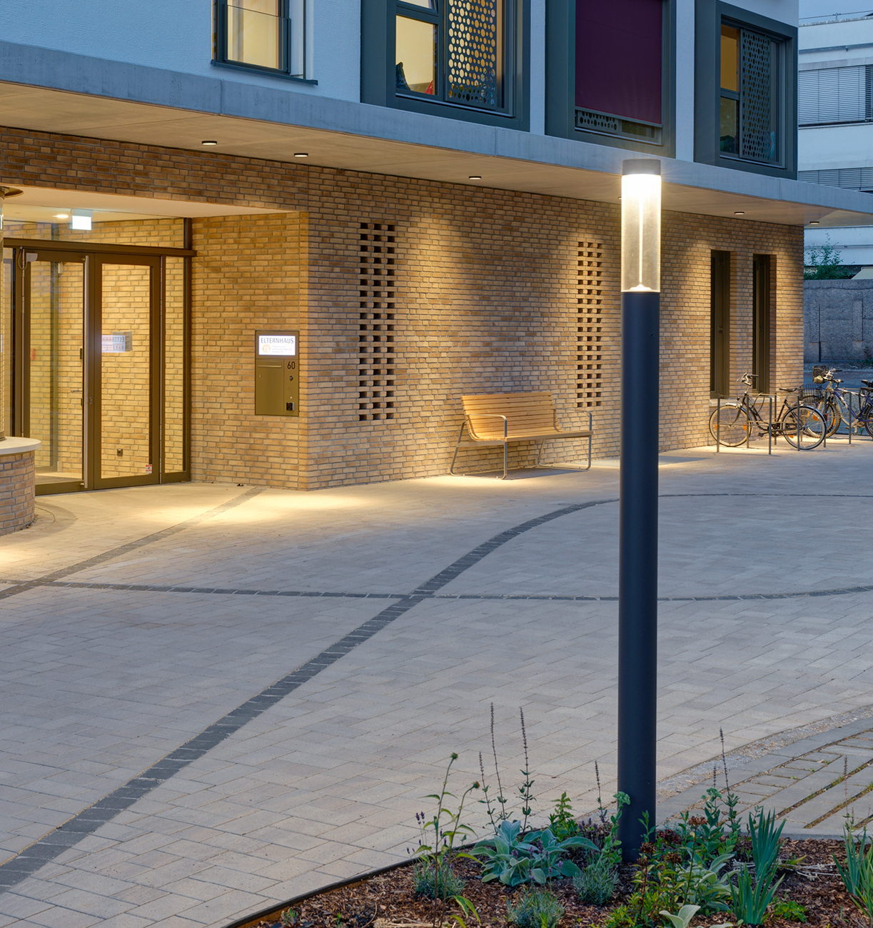 Light building elements are luminous design features for public areas. They are ideally suited for delineating and structuring interior and exterior spaces such as landscape areas, plazas, building entrances and atria.