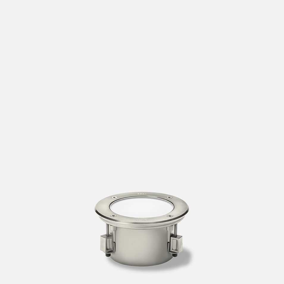 In-grade location luminaires. The patented mounting system allows for installation in pre-cored holes such as stone, tile or decks. These luminaires are designed to bear pressure loads up to 4400 lbs. from vehicles with pneumatic tires. The luminaires must not be used for traffic lanes where they are subject to horizontal pressure from vehicles braking, accelerating and changing direction.