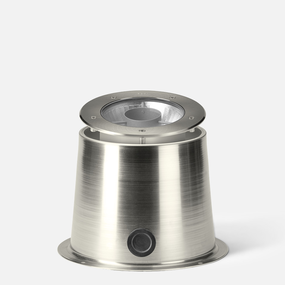 In-grade symmetric floodlight luminaires. These luminaires are designed to bear pressure loads up to 4400 lbs. from vehicles with pneumatic tires. The luminaires must not be used for traffic lanes where they are subject to horizontal pressure from vehicles braking, accelerating and changing direction.
