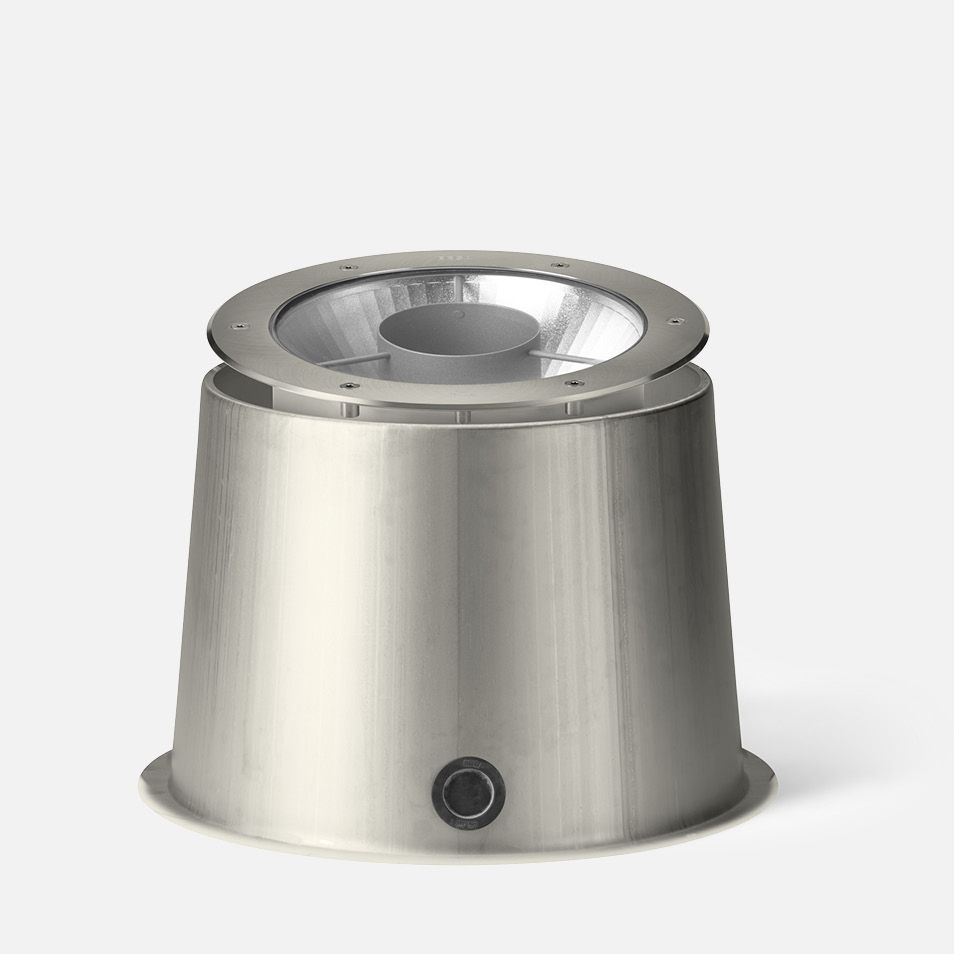 In-grade symmetric floodlight luminaires. These luminaires are designed to bear pressure loads up to 4400 lbs. from vehicles with pneumatic tires. The luminaires must not be used for traffic lanes where they are subject to horizontal pressure from vehicles braking, accelerating and changing direction.