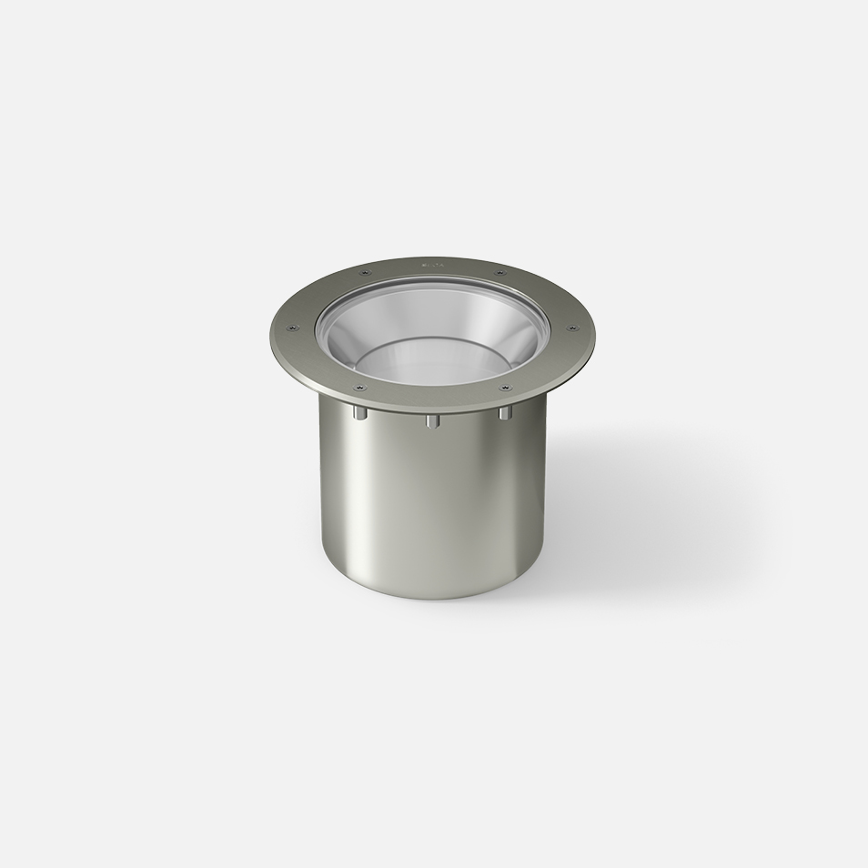 A round in-grade intended for the illumination of walls, flag poles, landscape, and architectural features. Designed to bear pressure loads up to 4,400 lbs. from vehicles with pneumatic tires. The luminaire must not be used for traffic lanes where it is subject to horizontal pressure from vehicles braking, accelerating, or changing direction.