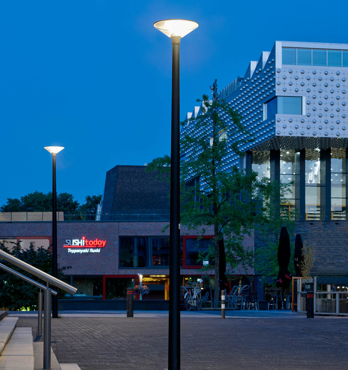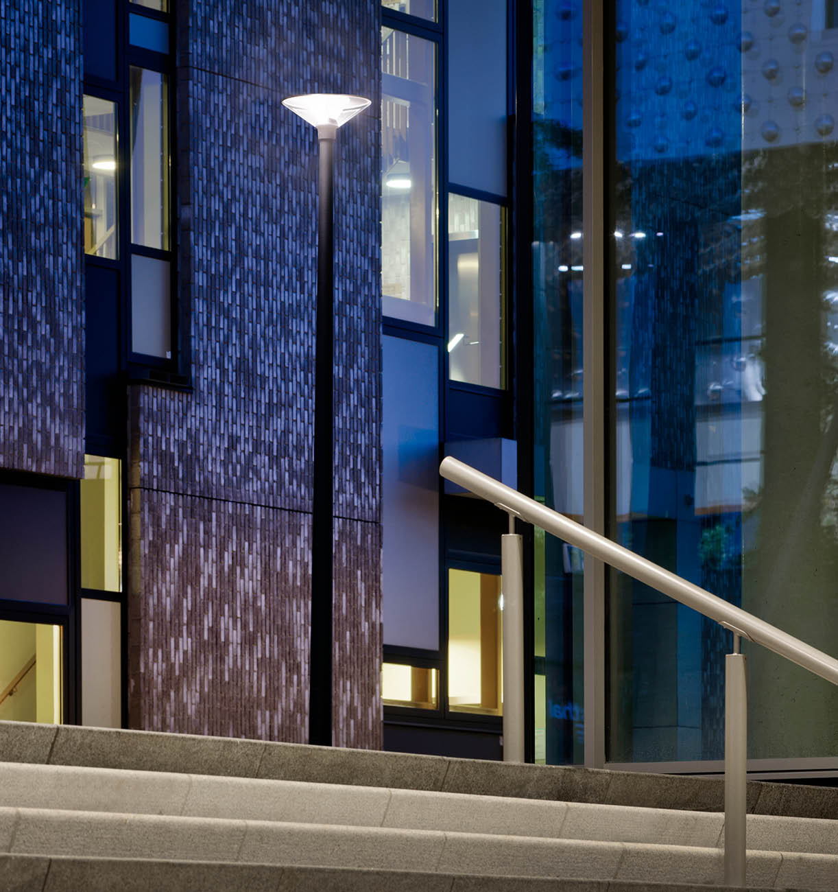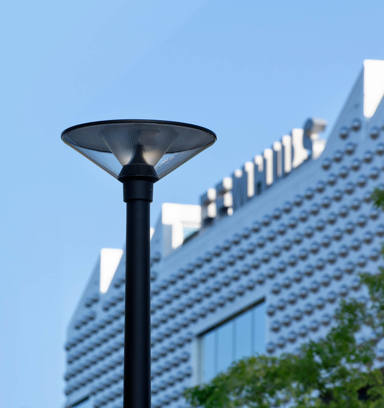 A series of pole-top luminaires with symmetrical or asymmetrical wide spread light distribution. The symmetrical light distribution is ideal for illuminating squares, plazas and other open areas while the asymmetric wide spread light distribution is ideal for illuminating streets and pathways.