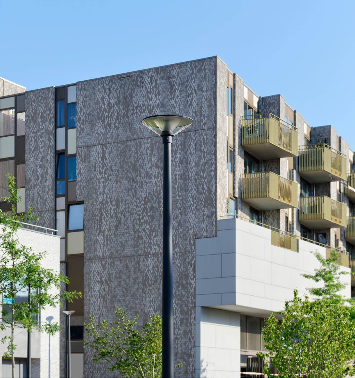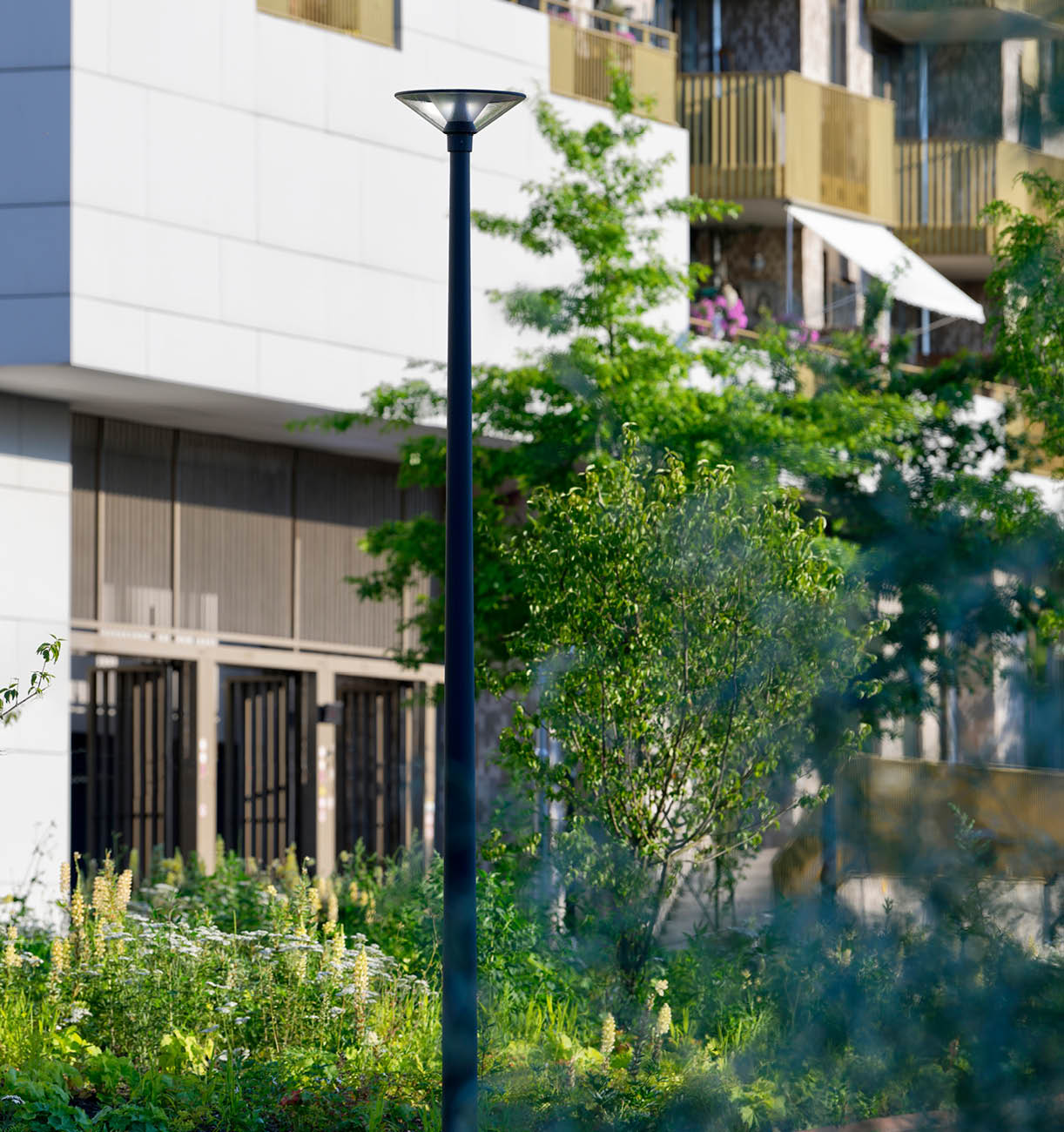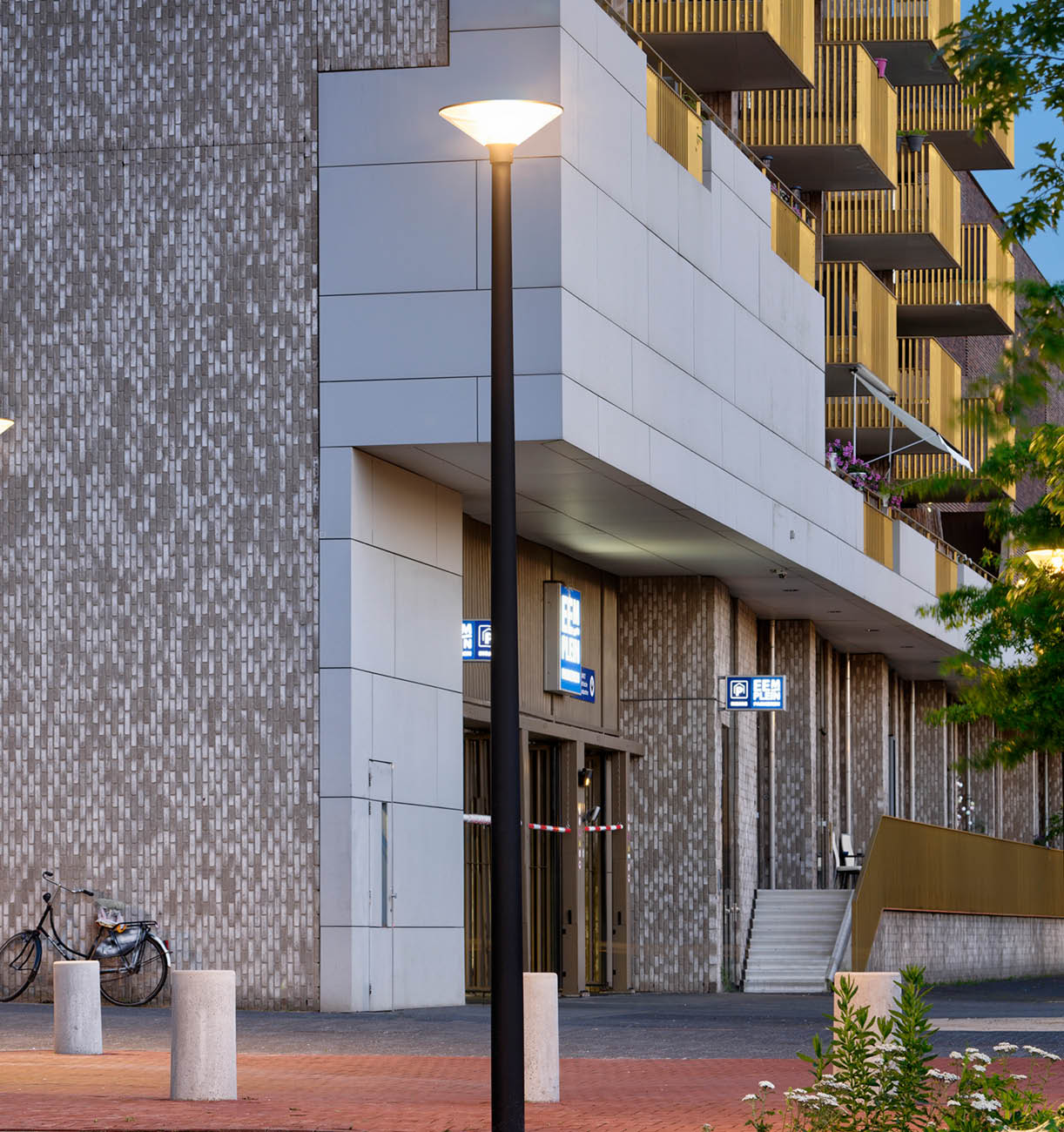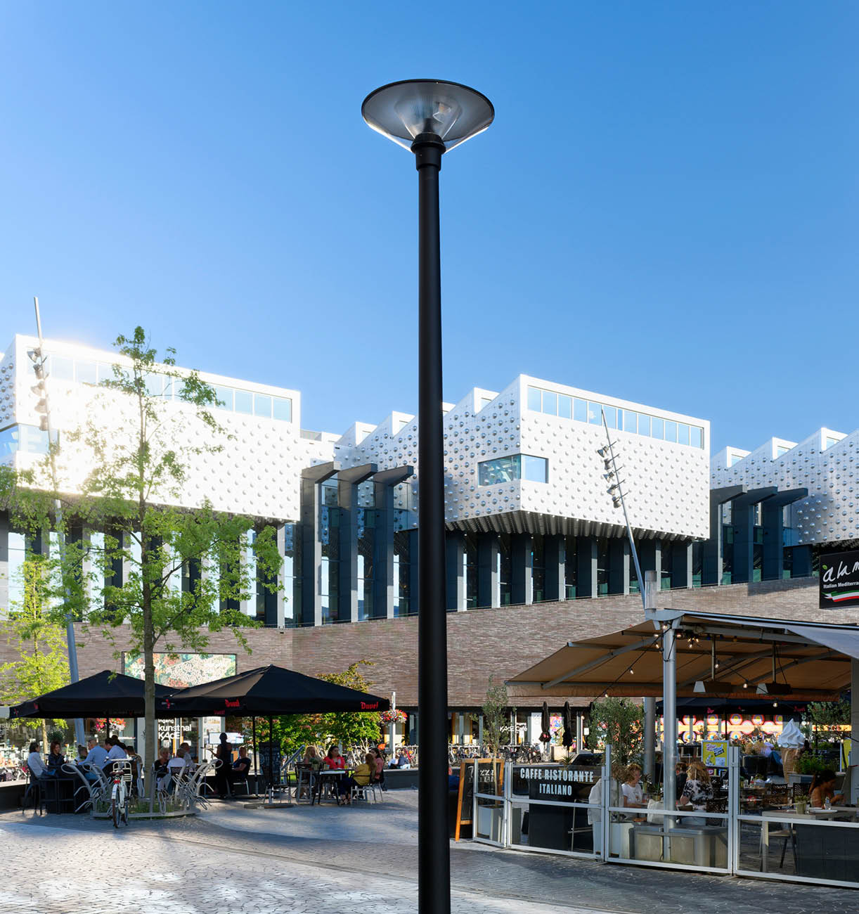 A series of pole-top luminaires with symmetrical or asymmetrical wide spread light distribution. The symmetrical light distribution is ideal for illuminating squares, plazas and other open areas while the asymmetric wide spread light distribution is ideal for illuminating streets and pathways.