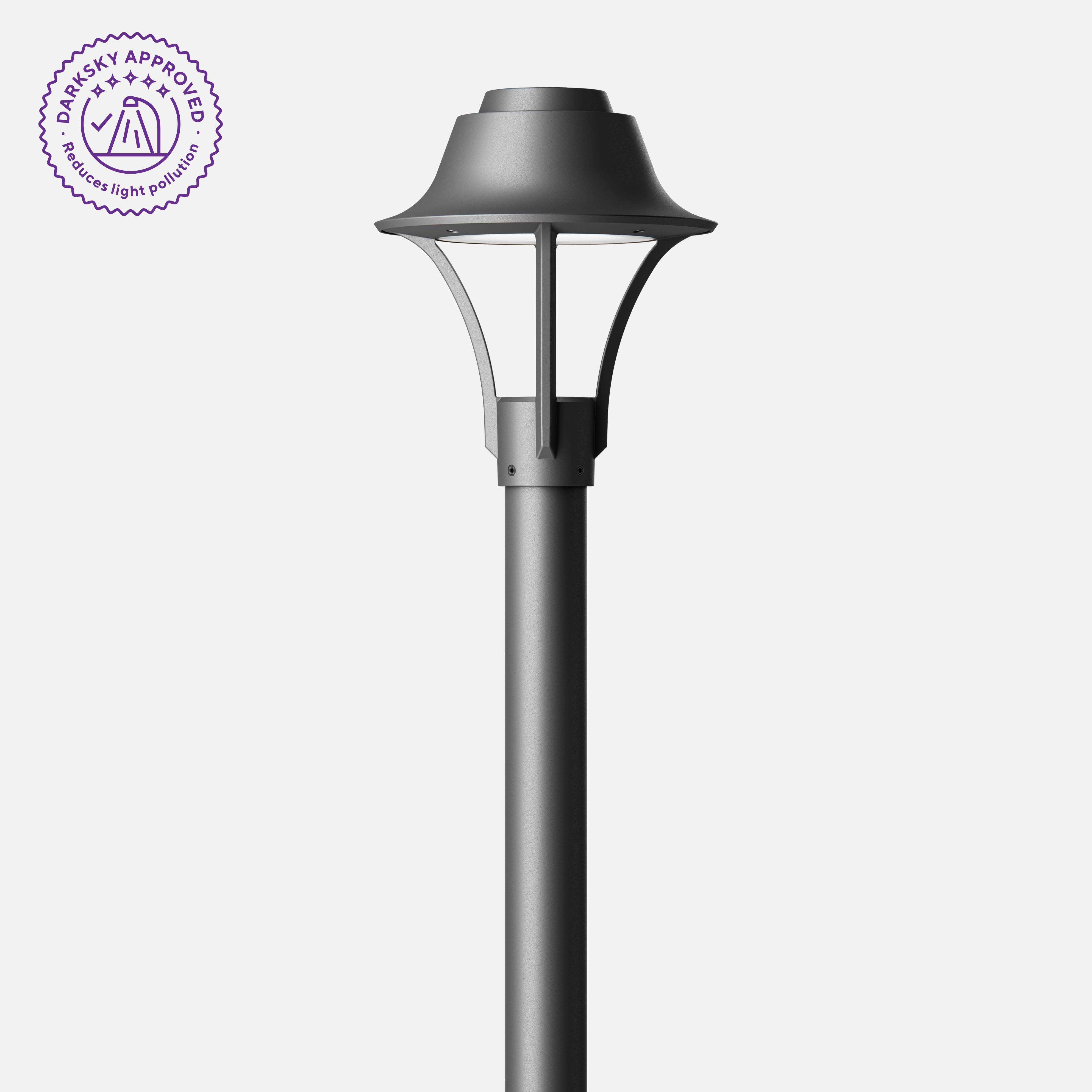 Pole-top luminaires with asymmetrical light distribution. The asymmetrical light distribution is ideal for illuminating parking areas, roadways and walkways. DarkSky Approved (2700K and 3000K only).