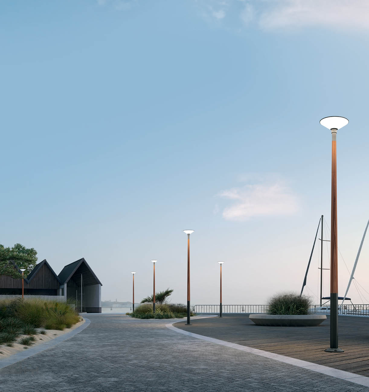 Pole-top luminaires with unshielded symmetrical light distribution. The symmetrical light distribution is ideal for illuminating squares, plazas and other open areas.