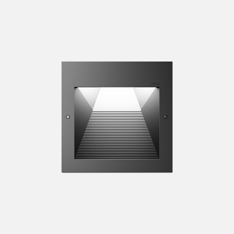 Recessed wall luminaire with forward throw light distribution for the illumination of ground surfaces, stairs and pathways. Separate installation housing allows for seamless coordination into construction and easy maintenance.