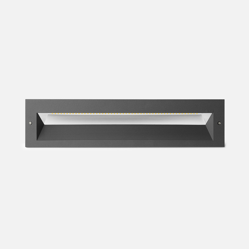 Recessed wall luminaire with asymmetric light distribution that is ideal for the illumination of ground surfaces, building entrances, stairs and footpaths. Separate installation housing allows for seamless coordination into construction and easy maintenance.