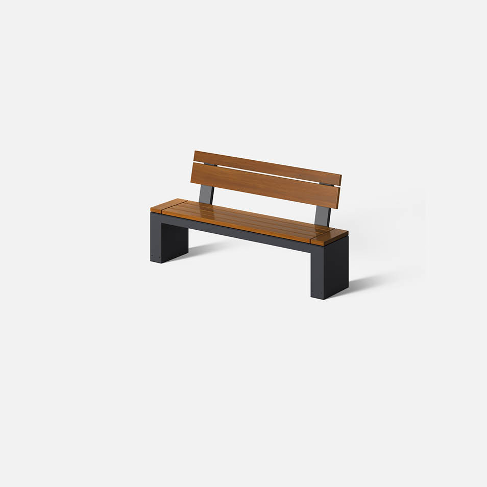 Designed to balance form and function, this wood-topped bench provides a comfortable place to rest. The introduction of wood helps designers soften the built environment.