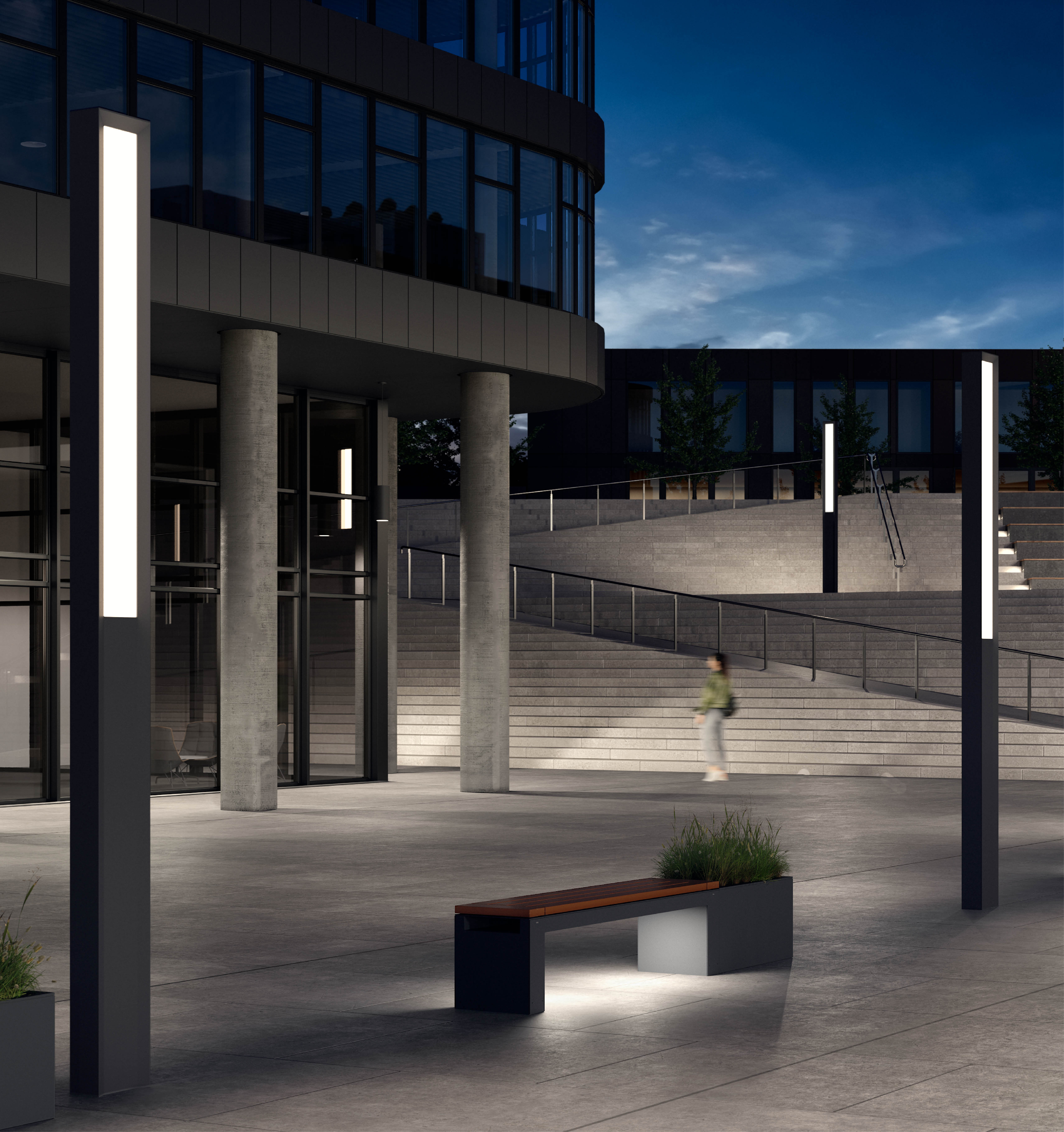 Designed to balance form and function, this bench with an integrated planter brings nature within reach. The introduction of wood helps designers soften the built environment. Available with integral illumination.