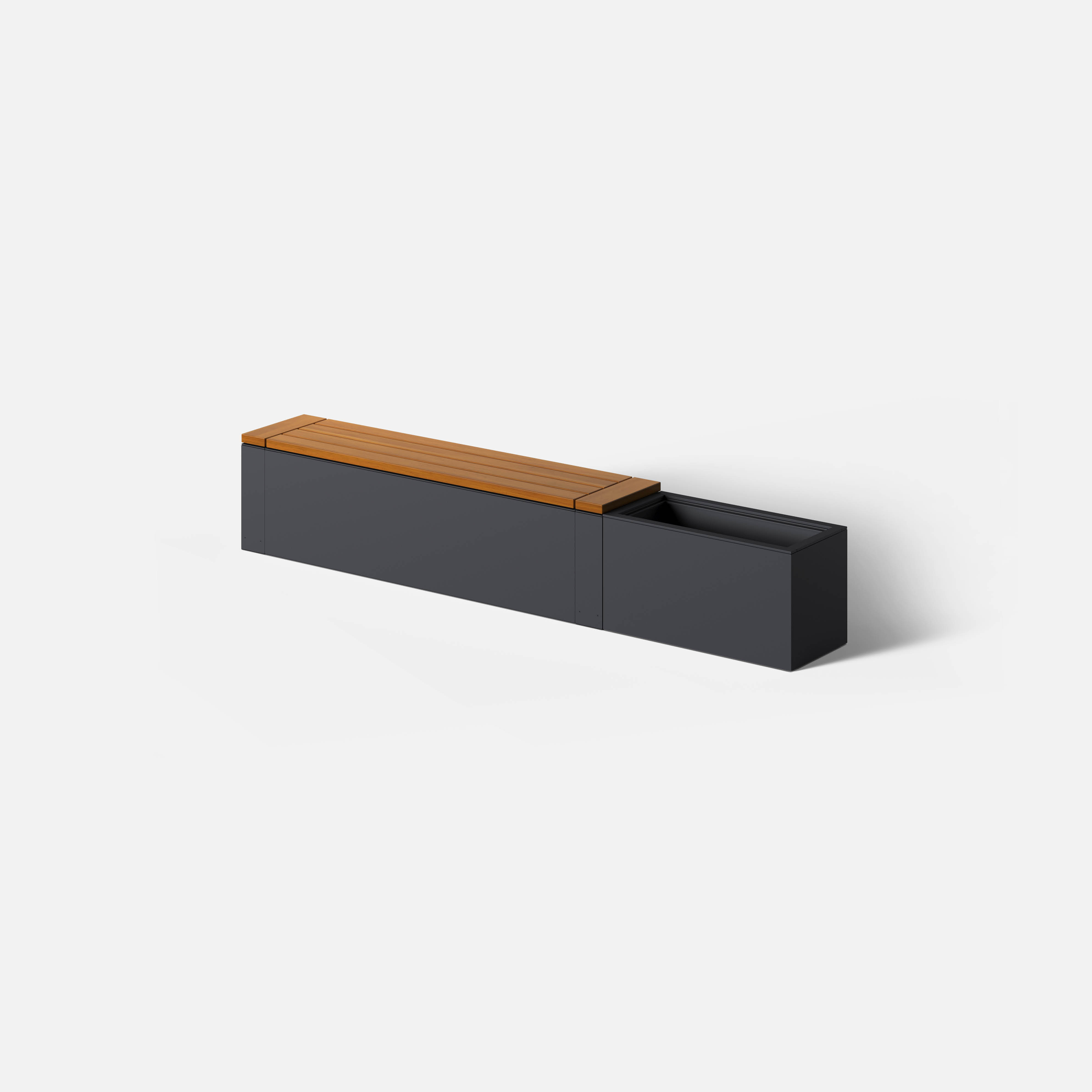 Designed to balance form and function, this bench with an integrated planter brings nature within reach. The introduction of wood helps designers soften the built environment.